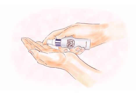 ・集中ケアパウダー1包を手のひらに取り、 少量の水で溶かします。